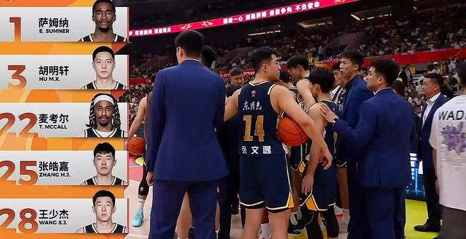 广东队首节先发,后场胡明轩麦考尔萨姆纳,前场张皓嘉王少杰,开局广东队防守端侵略性十足,但进攻表现却十分辣眼,能打出的流畅配合不多,仅靠张皓嘉的开局三分,麦考尔、萨姆纳的罚球,5分钟仅取得7-2领先(这期间7中1,胡明轩甚至投出了三分球三不沾);